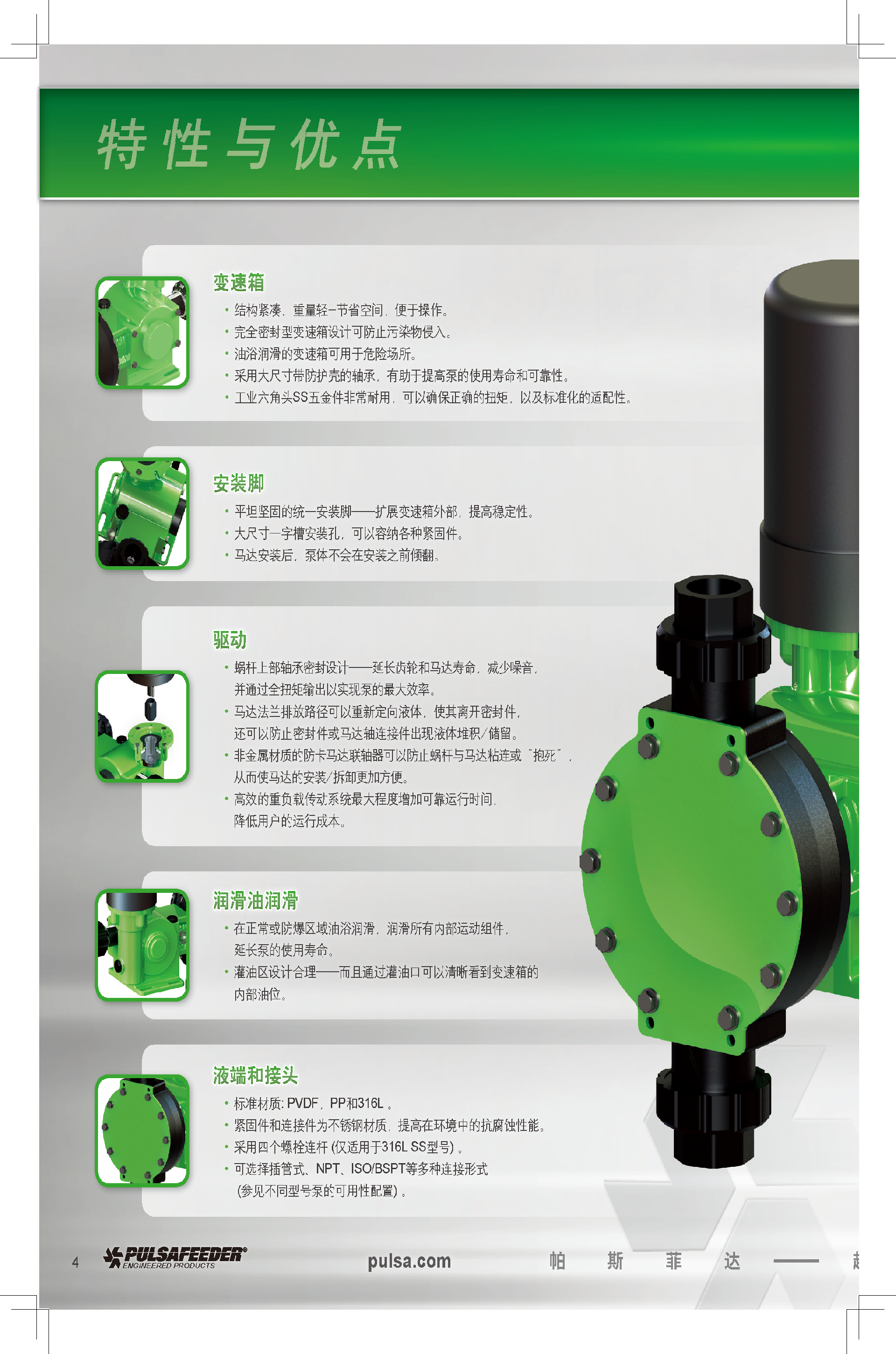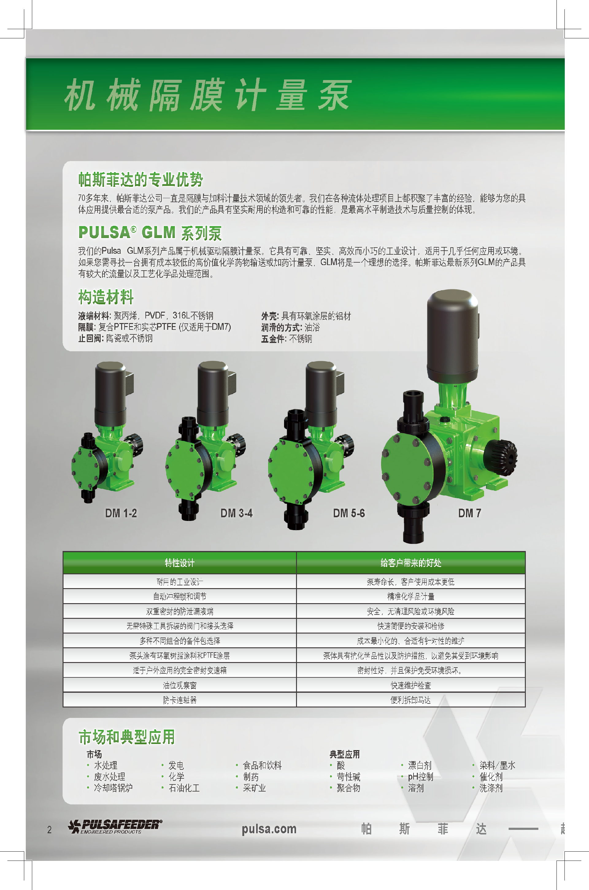 【Pulsafeeder】帕斯菲达 Pulsafeeder公司,主要产品有:PULSATRON计量泵,PULSATRON电磁驱动隔膜计量泵。自1936年以来,Pulsafeeder一直流体处理技术的公认领导者。主要产品有:PULSATRON计量泵,PULSATRON电磁驱动隔膜计量泵。PULSAFEEDER一直了解,领导层是由许多方面,都在平衡:由来已久,高性能的产品,全面的应用解决方案,创新的工程设计,知识和周到的服务,在研发和制造工艺的持续改进。PULSAFEEDER努力保持这种平衡 - 永远的目标,为客户提供最好的产品和技术支持