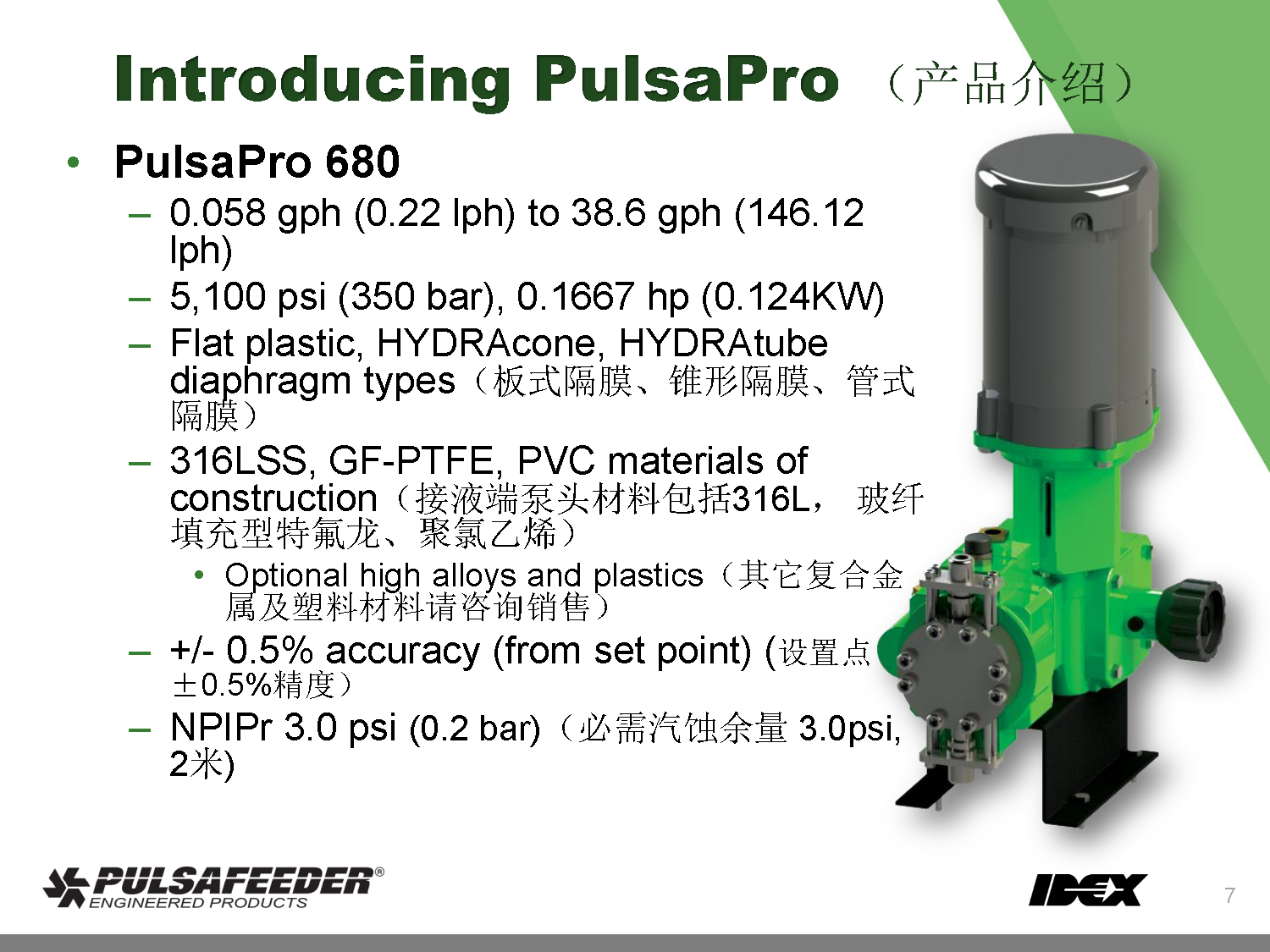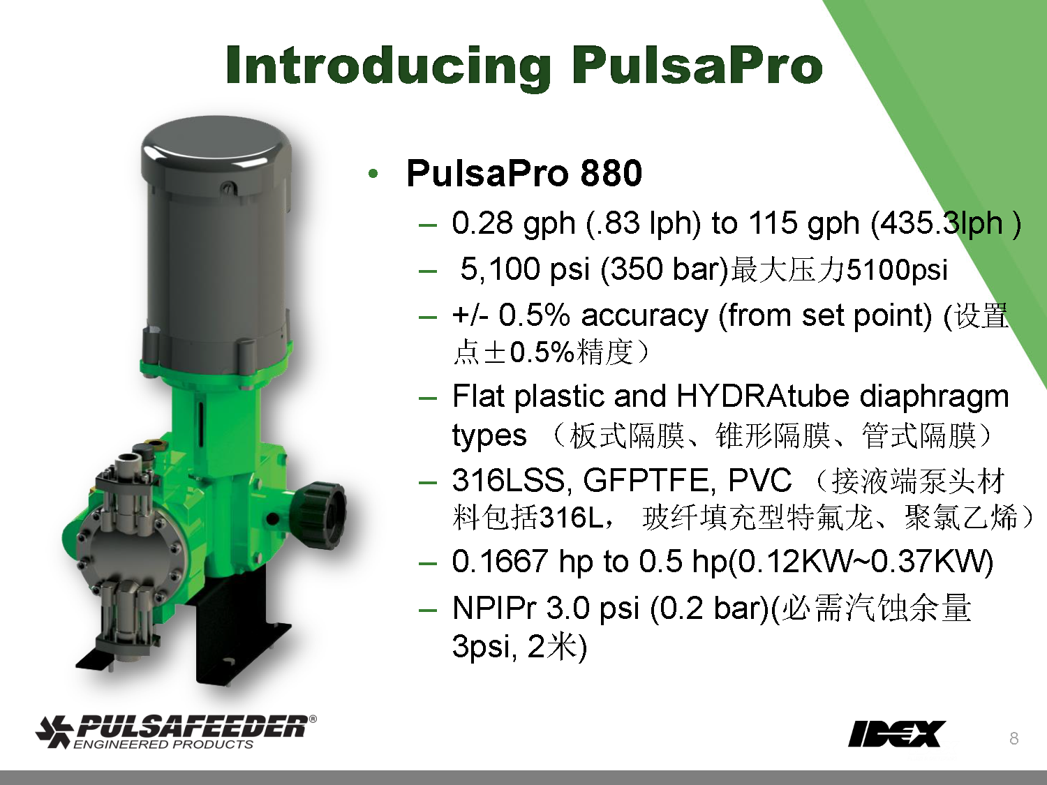 【Pulsafeeder】帕斯菲达 Pulsafeeder公司,主要产品有:PULSATRON计量泵,PULSATRON电磁驱动隔膜计量泵。自1936年以来,Pulsafeeder一直流体处理技术的公认领导者。主要产品有:PULSATRON计量泵,PULSATRON电磁驱动隔膜计量泵。PULSAFEEDER一直了解,领导层是由许多方面,都在平衡:由来已久,高性能的产品,全面的应用解决方案,创新的工程设计,知识和周到的服务,在研发和制造工艺的持续改进。PULSAFEEDER努力保持这种平衡 - 永远的目标,为客户提供最好的产品和技术支持